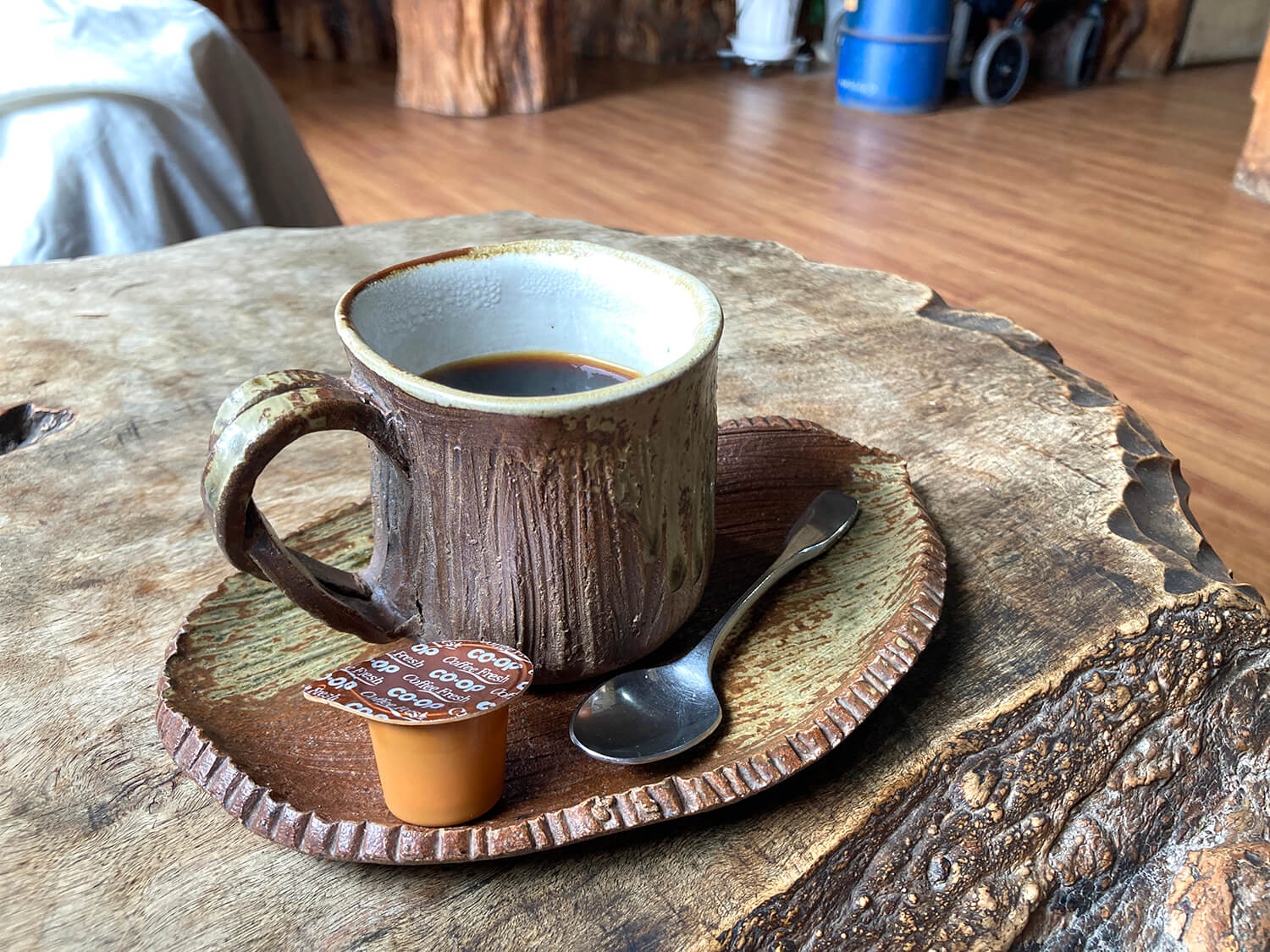 캔디 컬러의 점내는 쇼와 시대로 타임스타임한 듯한 복고풍 분위기가 물씬 풍긴다. 무거운 문, 주목 통나무로 잘라낸 의자, 한 판자 테이블은 모두 주인이 손으로 조각한 것입니다. 그들의 창의성에 매료된 것인지, 최근에는 시라오이쵸 토비우 지구의 '토비오 아트 커뮤니티'에서 활약하는 젊은 작가들이 자주 방문하고 있다.