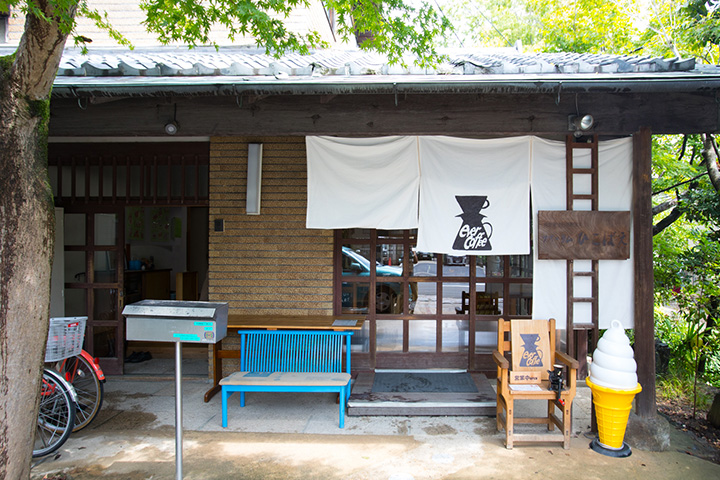 란덴 선에서 가장 고풍스러운 우타노역에서 내려 이치조 거리로 나가면 후쿠오지 버스 정류장 앞에 초록색 카페가 있습니다. 복고풍 단층집의 나무 사이로 태양이 비치고 있습니다. 커피 원두를 가공 판매하는 '포럼 히코배'가 2017년에 오픈한 카페에서는, 커피의 불량품 원두를 정성스럽게 제거한 신선 원두를 주문을 받은 후 분쇄하고 천천히 핸드 드립을 실시하고 있습니다. 그릇에 소프트 아이스크림을 담은 '히코배 선디'는 바닐라와 말차의 두 가지 맛으로 제공되며, 바삭한 식감으로 제공됩니다.