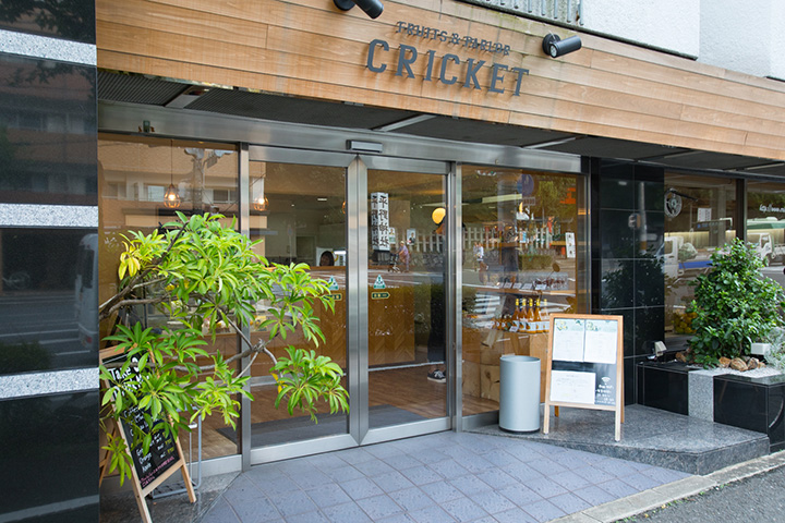 란덴 기타노선의 발착역인 기타노 시라우메초역에서 니시오지 거리를 북쪽으로 가면 히라노 신사 문 앞에 과일 가게 '크리켓'이 있습니다. 과일의 소믈리에라고 불리는 야채 및 과일 고문 인정을 받은 주인이 제철 과일을 골라 메뉴에 사용하고 있습니다. 과일 샌드위치가 인기입니다. 과일이 들어가지 않도록 사과 조각에 생크림을 깔고 제철 과일 7종을 끼워 넣었습니다.